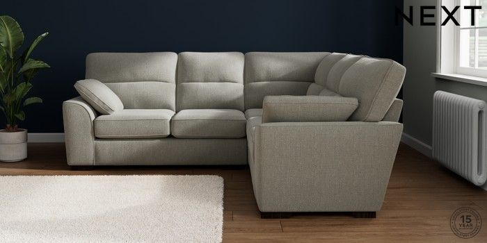 7.2.10 Buy Stamford Highback Medium Corner Sofa - Universal Chunky Texture Dove Large Square Angle - Dark from the Next UK online shop Click here to use our accessible website