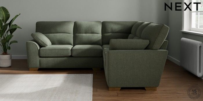 7.2.10 Buy Stamford Highback Medium Corner Sofa - Universal Chunky Texture Mid Forest Green Large Square Angle - Brushed Brass from the Next UK online shop Click here to use our accessible website