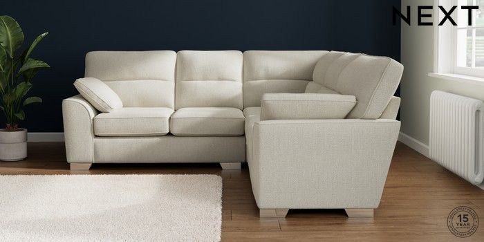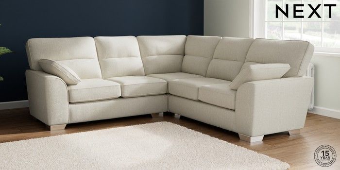 7.2.10 Buy Stamford Highback Medium Corner Sofa - Universal Chunky Texture Oyster Large Square Angle - Chrome Metal from the Next UK online shop Click here to use our accessible website