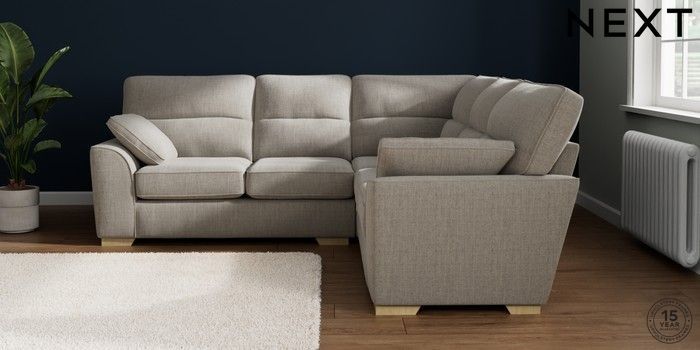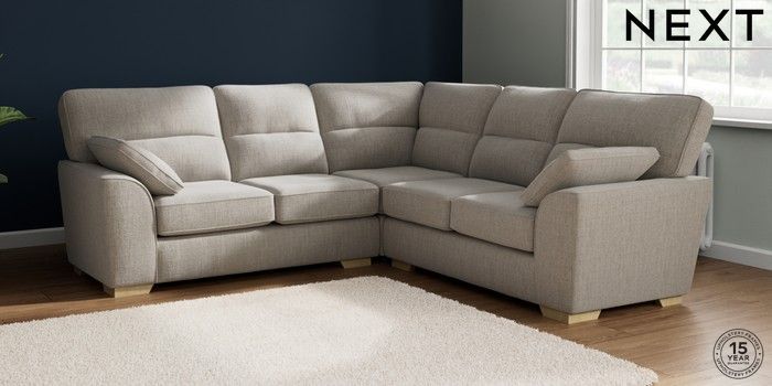7.2.10 Buy Stamford Highback Medium Corner Sofa - Universal Chunky Weave Dove Grey Large Square Angle - Light from the Next UK online shop Click here to use our accessible website