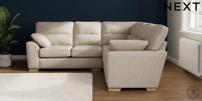 7.2.10 Buy Stamford Highback Medium Corner Sofa - Universal Chunky Weave Mid Natural Large Square Angle - Light from the Next UK online shop Click here to use our accessible website