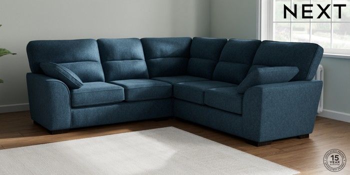 7.2.10 Buy Stamford Highback Medium Corner Sofa - Universal Cotswold Chenille Dark Blue Large Square Angle - Dark from the Next UK online shop Click here to use our accessible website