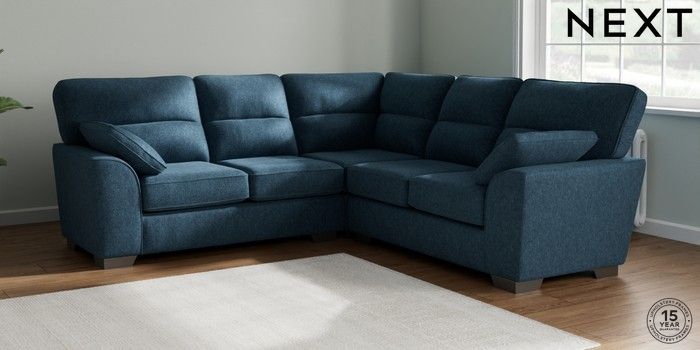 7.2.10 Buy Stamford Highback Medium Corner Sofa - Universal Cotswold Chenille Dark Blue Large Square Angle - Gunmetal from the Next UK online shop Click here to use our accessible website