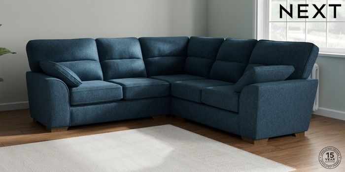 7.2.10 Buy Stamford Highback Medium Corner Sofa - Universal Cotswold Chenille Dark Blue Large Square Angle - Mid from the Next UK online shop Click here to use our accessible website