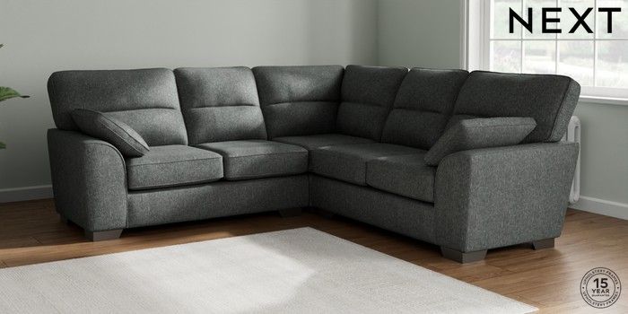 7.2.6 Buy Stamford Highback Medium Corner Sofa - Universal Cotswold Chenille Dark Grey Large Square Angle - Gunmetal from the Next UK online shop Click here to use our accessible website
