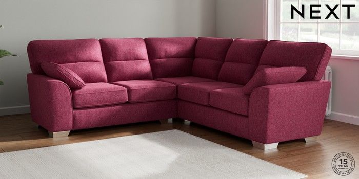 7.2.10 Buy Stamford Highback Medium Corner Sofa - Universal Cotswold Chenille Dark Raspberry Pink Large Square Angle - Chrome Metal from the Next UK online shop Click here to use our accessible website