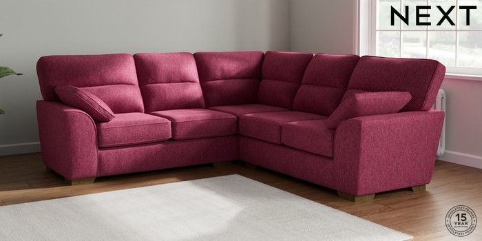 7.2.10 Buy Stamford Highback Medium Corner Sofa - Universal Cotswold Chenille Dark Raspberry Pink Large Square Angle - Mid from the Next UK online shop Click here to use our accessible website
