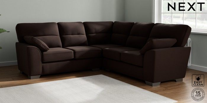 7.2.10 Buy Stamford Highback Medium Corner Sofa - Universal Fine Chenille Easy Clean Chocolate Brown Large Square Angle - Gunmetal from the Next UK online shop Click here to use our accessible website