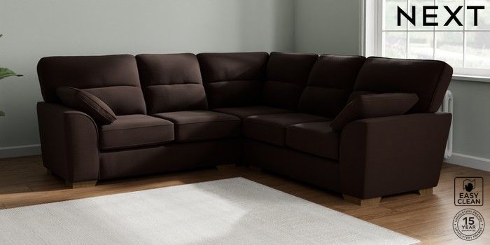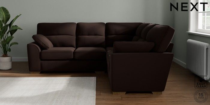 7.2.10 Buy Stamford Highback Medium Corner Sofa - Universal Fine Chenille Easy Clean Chocolate Brown Large Square Angle - Mid from the Next UK online shop Click here to use our accessible website