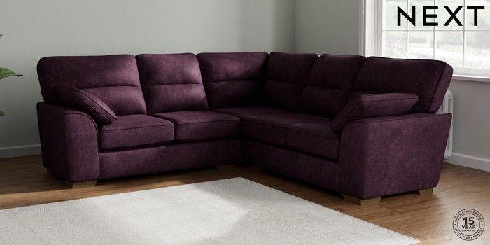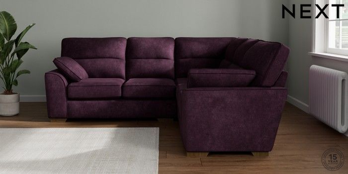 7.2.10 Buy Stamford Highback Medium Corner Sofa - Universal Plush Chenille Dark Plum Purple Large Square Angle - Mid from the Next UK online shop Click here to use our accessible website