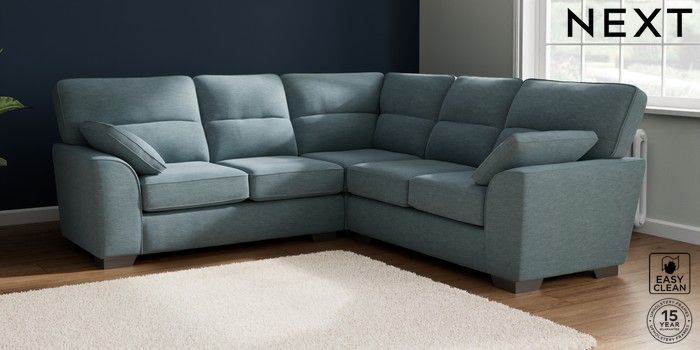 7.2.6 Buy Stamford Highback Medium Corner Sofa - Universal Fine Chenille Easy Clean Mid Blue Large Square Angle - Gunmetal from the Next UK online shop Click here to use our accessible website