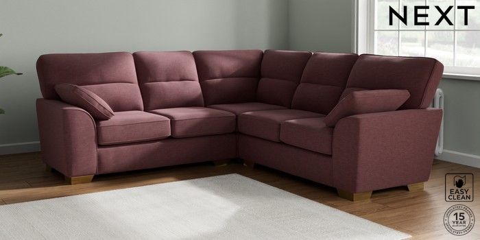 7.2.6 Buy Stamford Highback Medium Corner Sofa - Universal Fine Chenille Easy Clean Mid Mulberry Purple Large Square Angle - Brushed Brass from the Next UK online shop Click here to use our accessible website