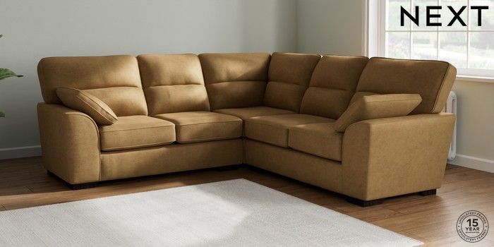 7.2.6 Buy Stamford Highback Medium Corner Sofa - Universal Luxe Chenille Honey Yellow Large Square Angle - Dark from the Next UK online shop Click here to use our accessible website