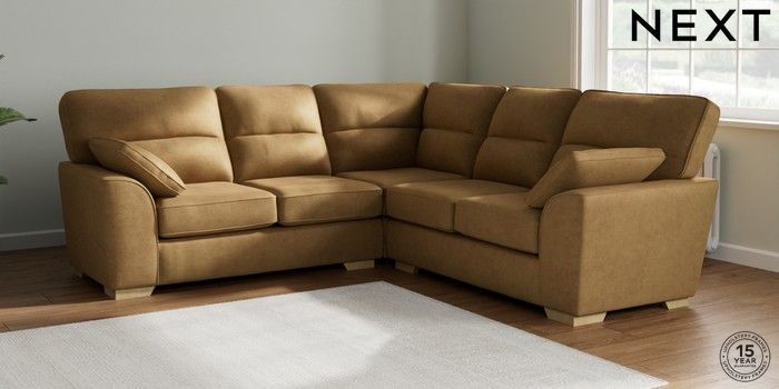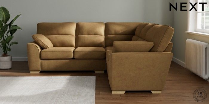 7.2.6 Buy Stamford Highback Medium Corner Sofa - Universal Luxe Chenille Honey Yellow Large Square Angle - Light from the Next UK online shop Click here to use our accessible website