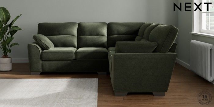 7.2.6 Buy Stamford Highback Medium Corner Sofa - Universal Luxe Chenille Mid Green Large Square Angle - Gunmetal from the Next UK online shop Click here to use our accessible website