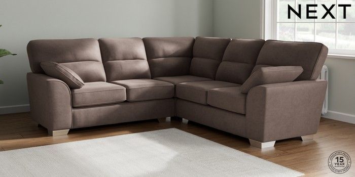 7.2.10 Buy Stamford Highback Medium Corner Sofa - Universal Luxe Chenille Mink Brown Large Square Angle - Chrome Metal from the Next UK online shop Click here to use our accessible website