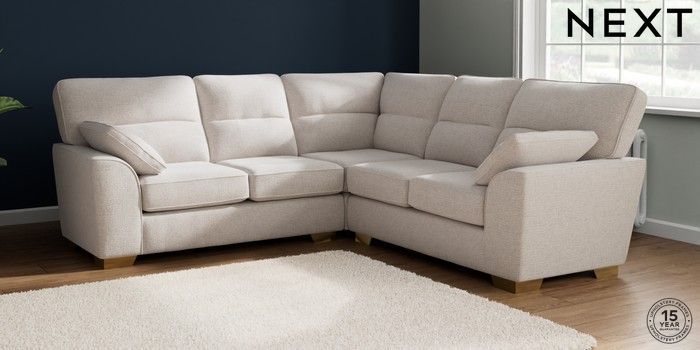 7.2.6 Buy Stamford Highback Medium Corner Sofa - Universal Multi Weave Oyster Large Square Angle - Brushed Brass from the Next UK online shop Click here to use our accessible website