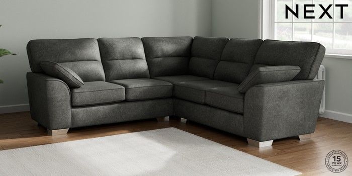 7.2.10 Buy Stamford Highback Medium Corner Sofa - Universal Plush Chenille Dark Grey Large Square Angle - Chrome Metal from the Next UK online shop Click here to use our accessible website