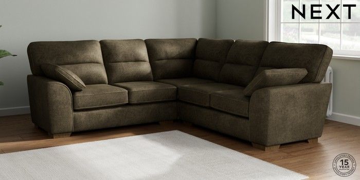 7.2.10 Buy Stamford Highback Medium Corner Sofa - Universal Plush Chenille Moss Green Large Square Angle - Mid from the Next UK online shop Click here to use our accessible website