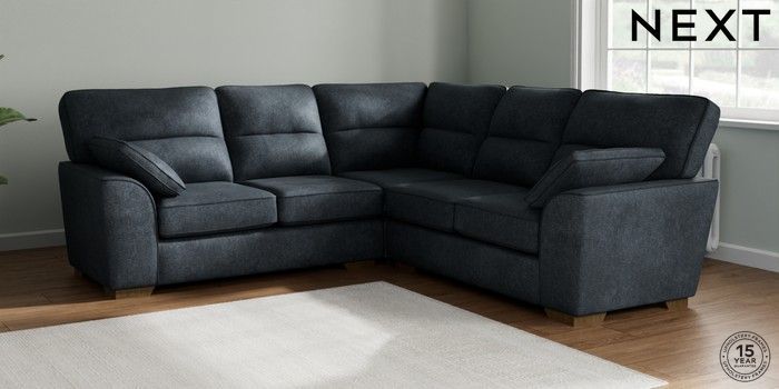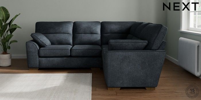 7.2.10 Buy Stamford Highback Medium Corner Sofa - Universal Plush Chenille Slate Blue Large Square Angle - Mid from the Next UK online shop Click here to use our accessible website