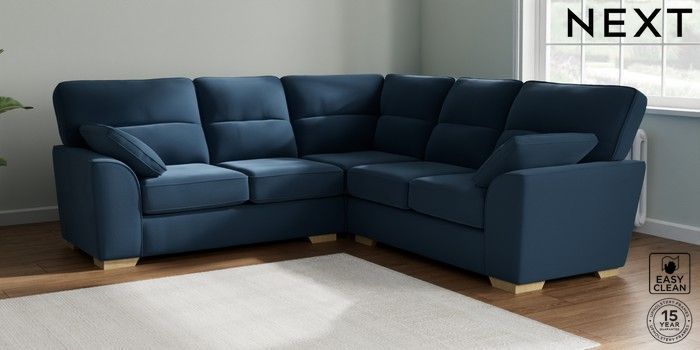 7.2.10 Buy Stamford Highback Medium Corner Sofa - Universal Plush Velvet Easy Clean Airforce Blue Large Square Angle - Light from the Next UK online shop Click here to use our accessible website
