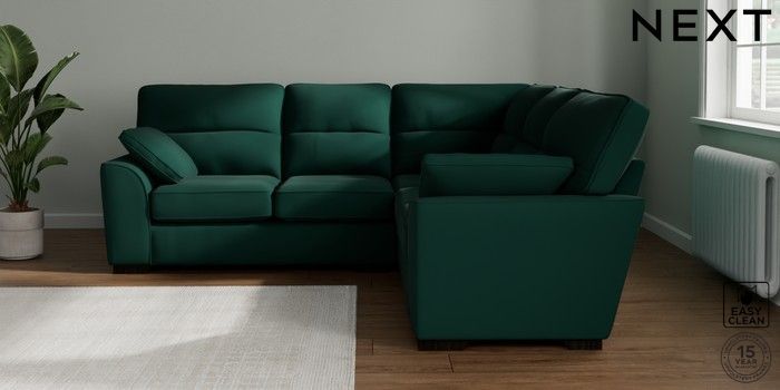 7.2.10 Buy Stamford Highback Medium Corner Sofa - Universal Plush Velvet Easy Clean Bottle Green Large Square Angle - Dark from the Next UK online shop Click here to use our accessible website