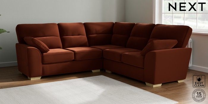 7.2.10 Buy Stamford Highback Medium Corner Sofa - Universal Plush Velvet Easy Clean Ginger Orange Large Square Angle - Light from the Next UK online shop Click here to use our accessible website