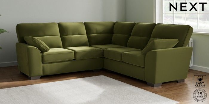 7.2.6 Buy Stamford Highback Medium Corner Sofa - Universal Plush Velvet Easy Clean Mid Olive Green Large Square Angle - Gunmetal from the Next UK online shop Click here to use our accessible website