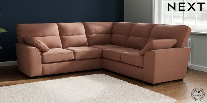 7.2.10 Buy Stamford Highback Medium Corner Sofa - Universal Relaxed Linen Look Light Rust Brown Large Square Angle - Dark from the Next UK online shop Click here to use our accessible website