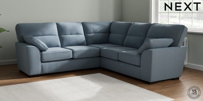 7.2.10 Buy Stamford Highback Medium Corner Sofa - Universal Relaxed Linen Look Mid Blue Large Square Angle - Dark from the Next UK online shop Click here to use our accessible website