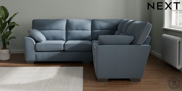 7.2.10 Buy Stamford Highback Medium Corner Sofa - Universal Relaxed Linen Look Mid Blue Large Square Angle - Gunmetal from the Next UK online shop Click here to use our accessible website