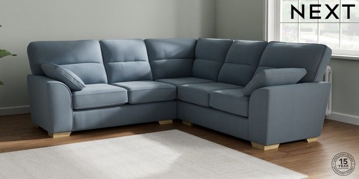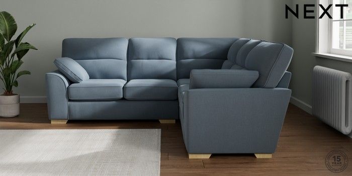 7.2.10 Buy Stamford Highback Medium Corner Sofa - Universal Relaxed Linen Look Mid Blue Large Square Angle - Light from the Next UK online shop Click here to use our accessible website