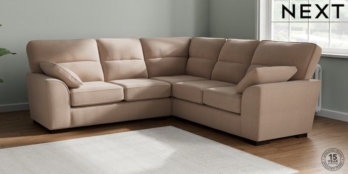 7.2.10 Buy Stamford Highback Medium Corner Sofa - Universal Relaxed Linen Look Mid Natural Large Square Angle - Dark from the Next UK online shop Click here to use our accessible website