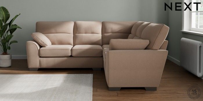 7.2.10 Buy Stamford Highback Medium Corner Sofa - Universal Relaxed Linen Look Mid Natural Large Square Angle - Gunmetal from the Next UK online shop Click here to use our accessible website
