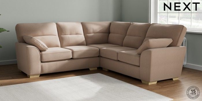 7.2.10 Buy Stamford Highback Medium Corner Sofa - Universal Relaxed Linen Look Mid Natural Large Square Angle - Light from the Next UK online shop Click here to use our accessible website