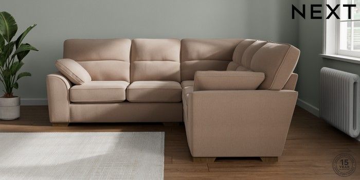 7.2.10 Buy Stamford Highback Medium Corner Sofa - Universal Relaxed Linen Look Mid Natural Large Square Angle - Mid from the Next UK online shop Click here to use our accessible website
