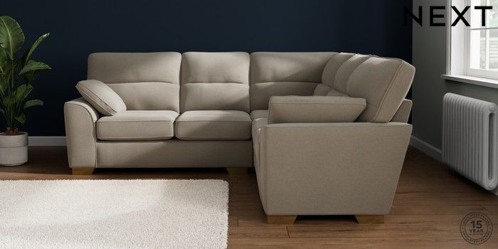 7.2.10 Buy Stamford Highback Medium Corner Sofa - Universal Ripple Chenille Light Natural Large Square Angle - Brushed Brass from the Next UK online shop Click here to use our accessible website