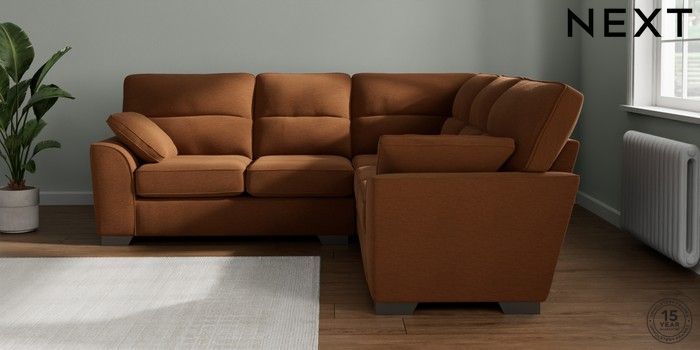 7.2.10 Buy Stamford Highback Medium Corner Sofa - Universal Ripple Chenille Mid Rust Brown Large Square Angle - Gunmetal from the Next UK online shop Click here to use our accessible website