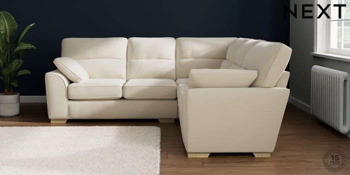 7.2.10 Buy Stamford Highback Medium Corner Sofa - Universal Ripple Chenille Oyster Large Square Angle - Light from the Next UK online shop Click here to use our accessible website