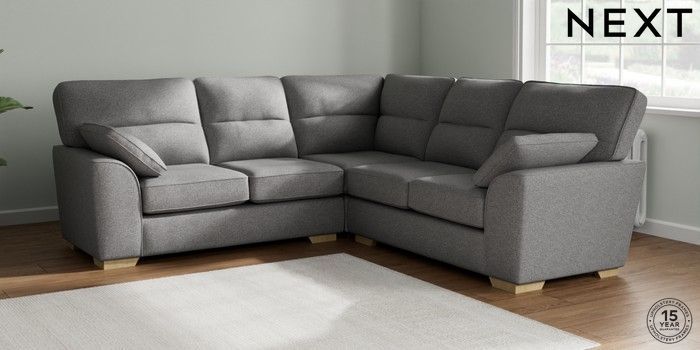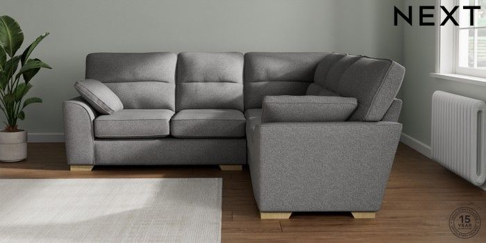 7.2.10 Buy Stamford Highback Medium Corner Sofa - Universal Studio Chenille Mid Grey Large Square Angle - Light from the Next UK online shop Click here to use our accessible website
