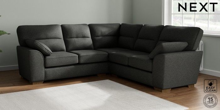 7.2.10 Buy Stamford Highback Medium Corner Sofa - Universal Tweedy Blend Easy Clean Charcoal Grey Large Square Angle - Mid from the Next UK online shop Click here to use our accessible website