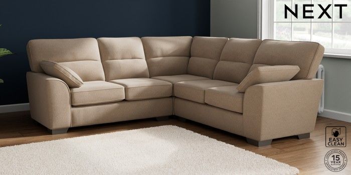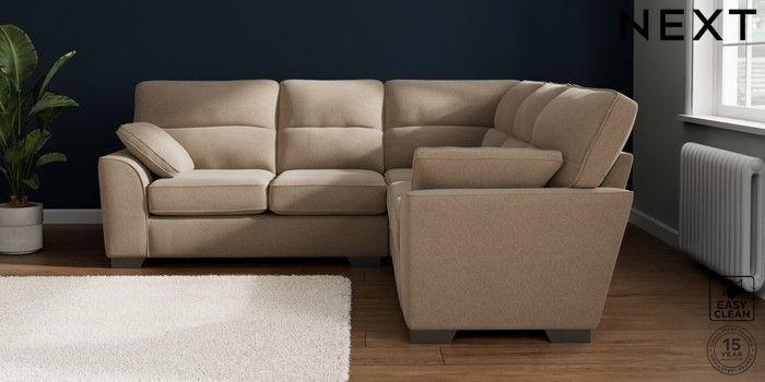 7.3.1 Buy Stamford Highback Medium Corner Sofa - Universal Tweedy Blend Easy Clean Light Dove Natural Large Square Angle - Gunmetal from the Next UK online shop Click here to use our accessible website