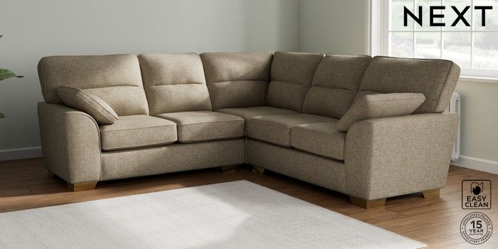 7.2.6 Buy Stamford Highback Medium Corner Sofa - Universal Woven Chenille Easy Clean Mid Natural Large Square Angle - Brushed Brass from the Next UK online shop Click here to use our accessible website