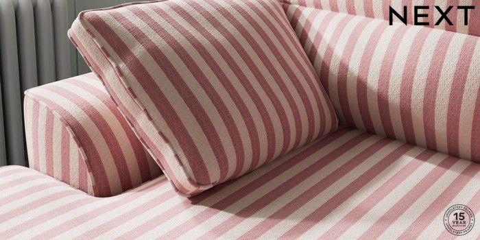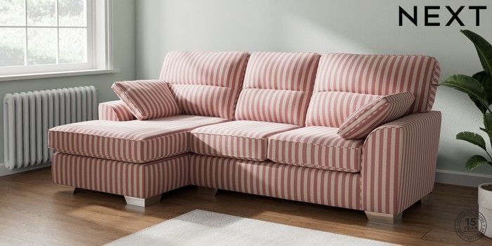 7.3.1 Buy Stamford Highback Medium Sofa Chaise - Left Hand Bold Chenille Stripe Dark Pink Large Square Angle - Chrome Metal from the Next UK online shop Click here to use our accessible website
