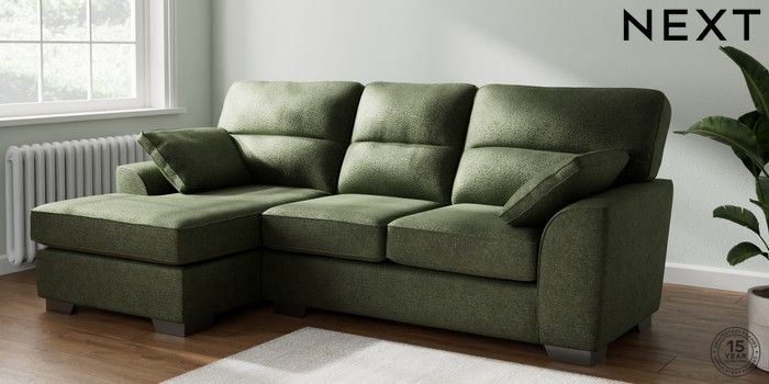 7.2.10 Buy Stamford Highback Medium Sofa Chaise - Left Hand Boucle Chenille Dark Moss Green Large Square Angle - Gunmetal from the Next UK online shop Click here to use our accessible website