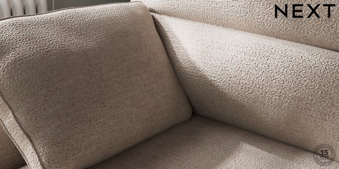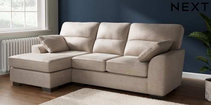 7.2.10 Buy Stamford Highback Medium Sofa Chaise - Left Hand Boucle Chenille Light Natural Large Square Angle - Gunmetal from the Next UK online shop Click here to use our accessible website