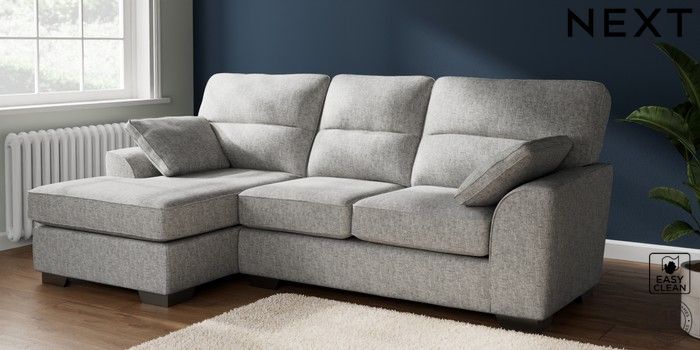 7.2.10 Buy Stamford Highback Medium Sofa Chaise - Left Hand Chunky Boucle Easy Clean Light Grey Large Square Angle - Gunmetal from the Next UK online shop Click here to use our accessible website