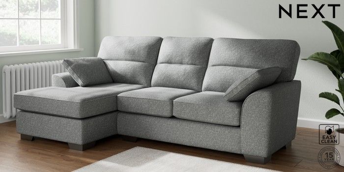 7.2.10 Buy Stamford Highback Medium Sofa Chaise - Left Hand Chunky Boucle Easy Clean Mid Grey Large Square Angle - Gunmetal from the Next UK online shop Click here to use our accessible website
