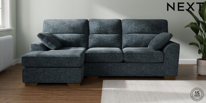 7.2.10 Buy Stamford Highback Medium Sofa Chaise - Left Hand Chunky Chenille Dark Navy Blue Large Square Angle - Mid from the Next UK online shop Click here to use our accessible website