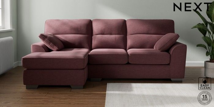 7.2.10 Buy Stamford Highback Medium Sofa Chaise - Left Hand Fine Chenille Easy Clean Mid Mulberry Purple Large Square Angle - Gunmetal from the Next UK online shop Click here to use our accessible website